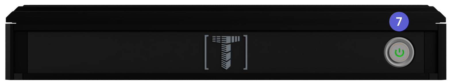 The power button allows the user to turn the device on and off. The power indicator LED notifies the user that the device is operational and the compute module is working.