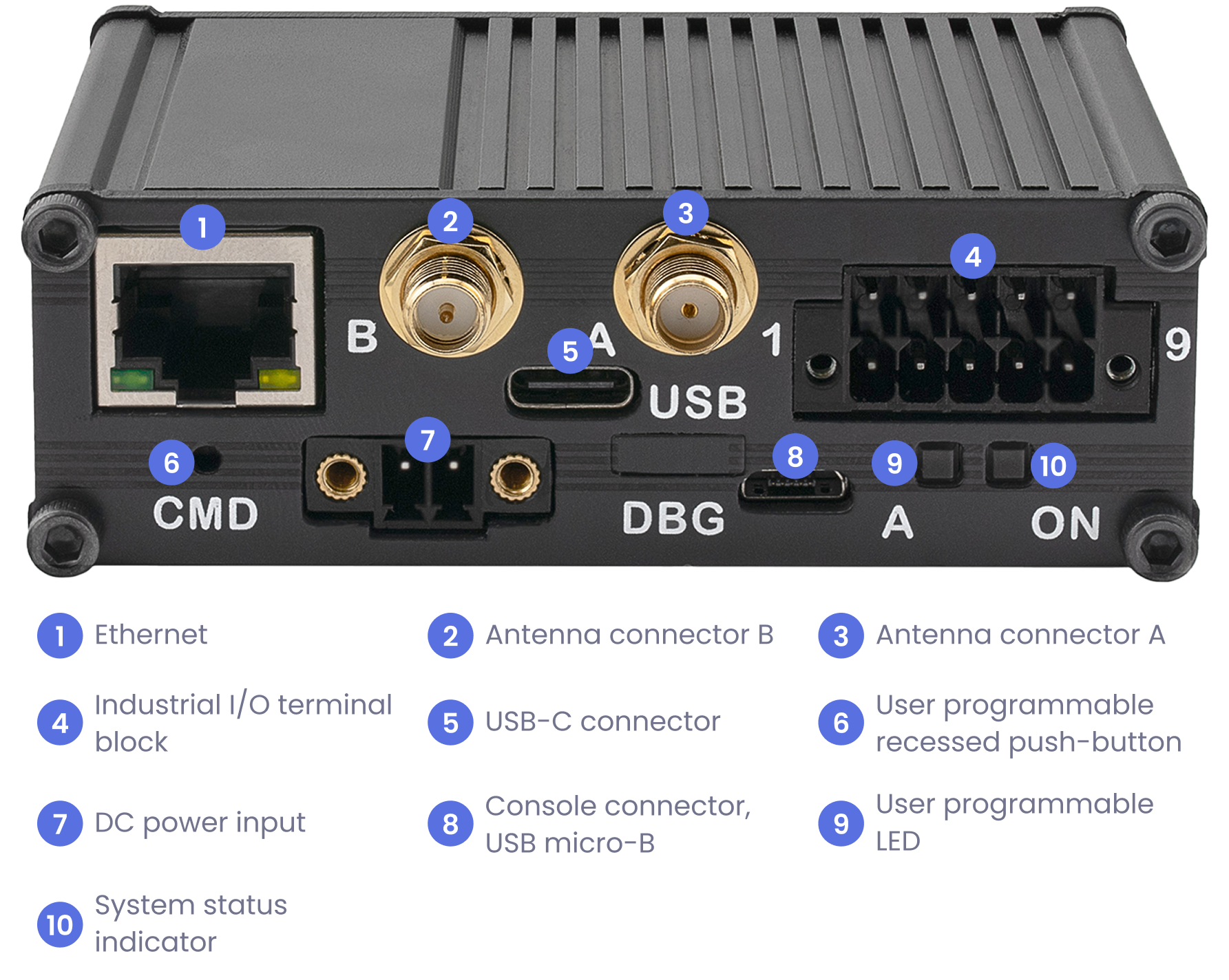 Connect a USB Type-A (or Type-C, depending on your host computer) to USB Type-B micro cable between the “Console” port on the gateway and your PC or Mac.